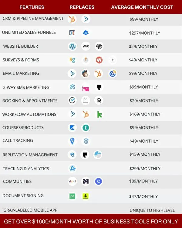 Are you tired of juggling multiple tools and platforms to handle your marketing efforts? Look no further. Our full-suite platform streamlines your marketing efforts by providing you with a suite of tools that handle everything including funnel building, landing pages, email and SMS marketing, calendars, course management and more.